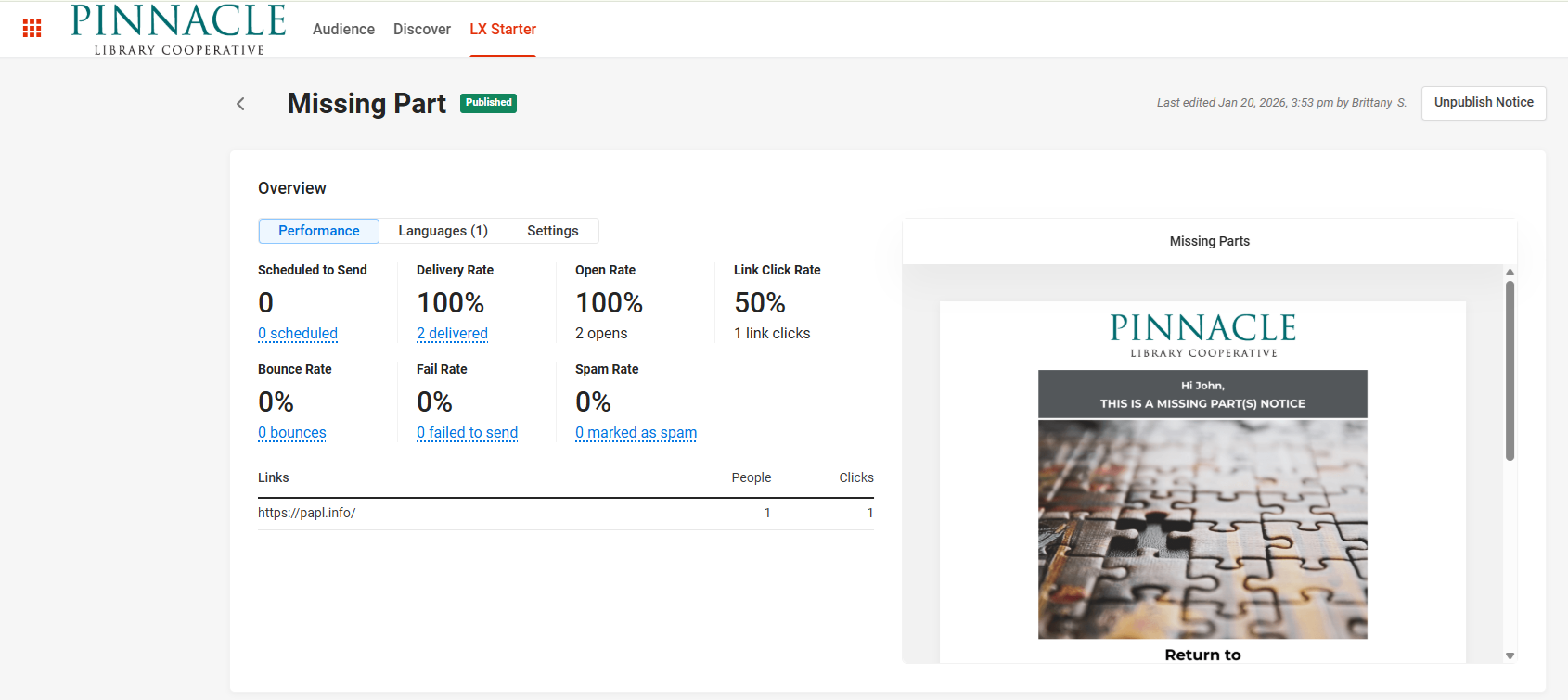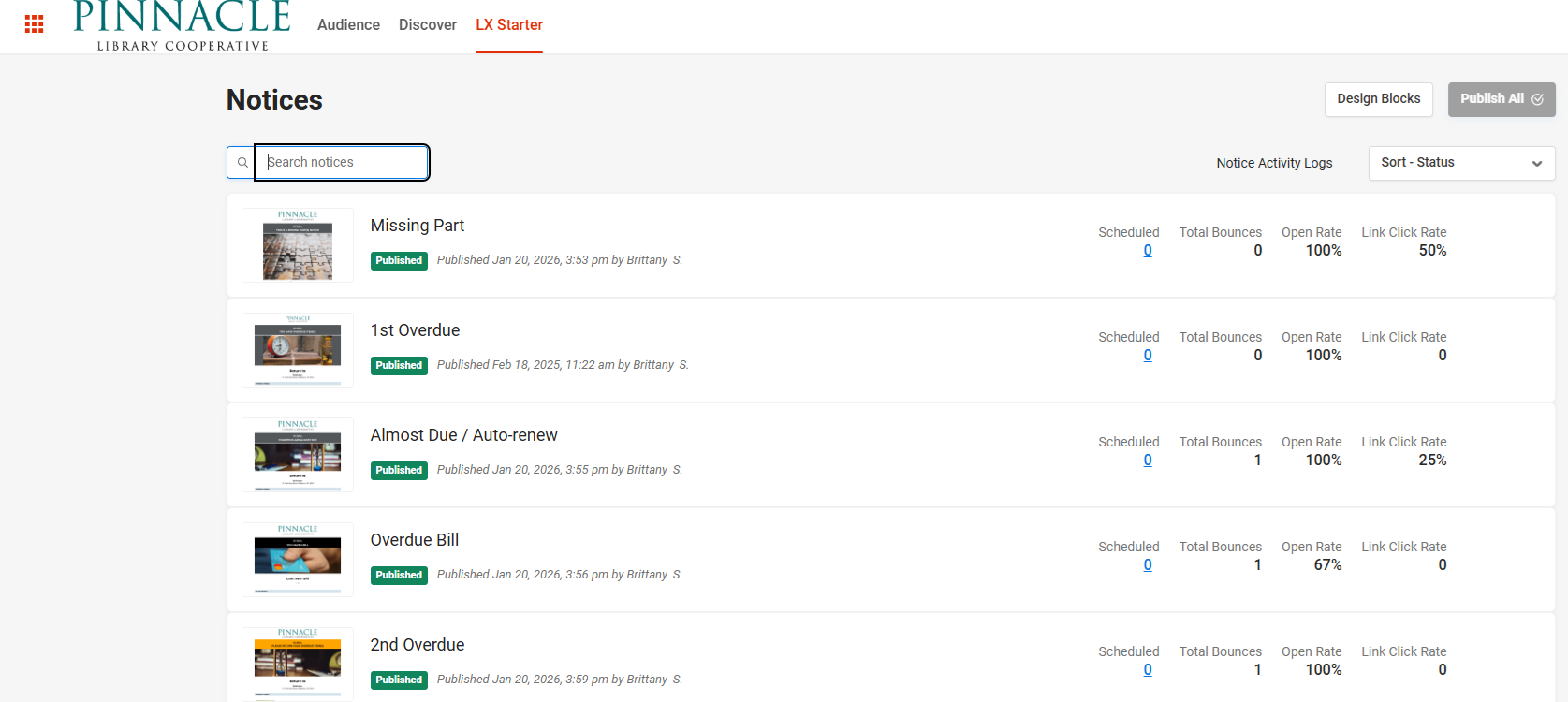 1. Once on a library branch, click 'LX Starter'. That will open a page that lists each notice.